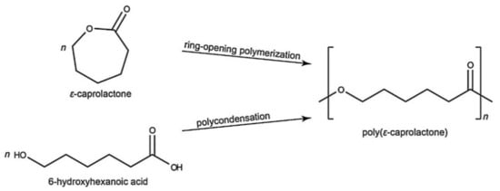 Scheme of the synthesis of PCL from ε-CL and hydroxyhexanoic acid. Reprinted with permission from Elsevier [67].