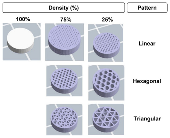 - Culbreath, C.J.; Gaerke, B.; Taylor, M.S.; McCullen, S.D.; Mefford, O.T. Effect of infill on resulting mechanical properties of additive manufactured bioresorbable polymers for medical devices. Materialia 2020, 12, 100732. [Google Scholar] [CrossRef]