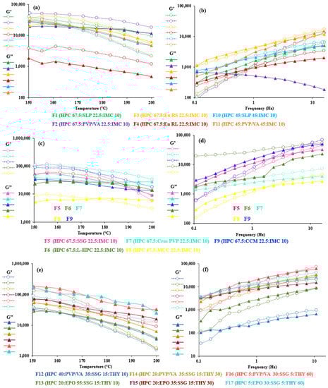 - Aho, J.; Edinger, M.; Botker, J.; Baldursdottir, S.; Rantanen, J. Oscillatory Shear Rheology in Examining the Drug-Polymer Interactions Relevant in Hot Melt Extrusion. J. Pharm. Sci. 2016, 105, 160–167. [Google Scholar] [CrossRef] [PubMed]