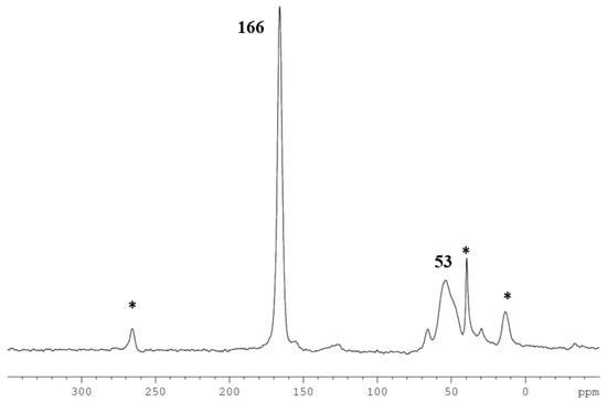 Solid-state 13C NMR spectra for PAN-NA: (*) peaks arising from spinning sidebands.