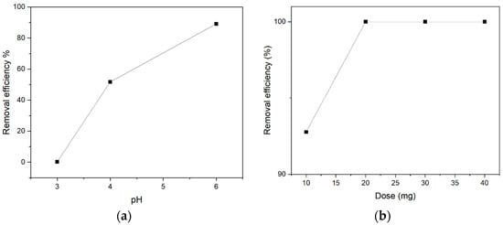 Impact of (a) pH and (b) adsorbent dose on the Pb(II) adsorption.