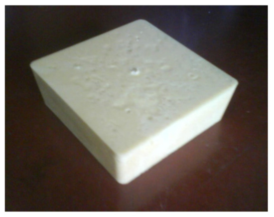 Since medium-density rigid PU foams’ industrial items are often produced in sealed moulds, rigid polyurethane (PU) foams’ blocks were made in a sealed steel mould that was shaped as a truncated pyramid, with the dimensions top 15 × 15 cm, bottom 14 × 14 cm, height 5 cm and inner volume V0 = 0.00105 m3.