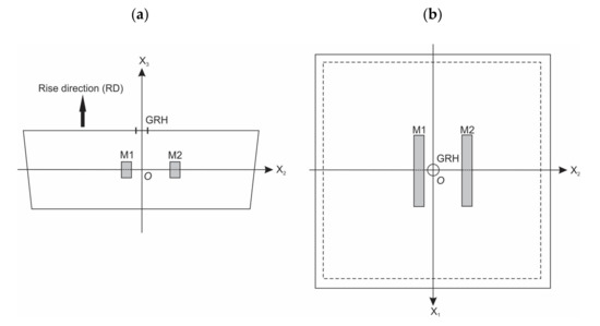 Figure 2. Two samples, M1 and M2, were cut from the central part of each of the seven molded PU foams’ blocks to avoid the foams’ higher density and modified structure due to adiabatic processes at the mould’s walls. The sample M1 was located at a distance of ~5 mm (one thickness) from the axis OX