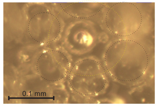 Figure 5. Diameters of the bubbles’ cross-sectional circles were measured from the cutting surface images. Images of slices cut from three mutually perpendicular sides, X