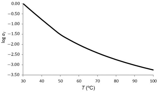 When the temperature is below Tg, the relationship between the shift factor and temperature is given by the Arrhenius equation [37], which is defined using the following expression: