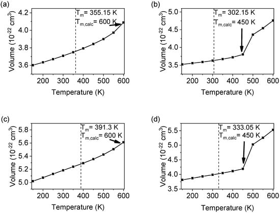 - Zou, Y.; Xiang, S.; Dai, C. Investigation on the efficiency and accuracy of methods for calculating melting temperature by molecular dynamics simulation. Comput. Mater. Sci. 2020, 171, 109156. [Google Scholar] [CrossRef]