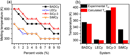 3.2. Dependence of Monomer Melting Temperature on Percentage of Voids