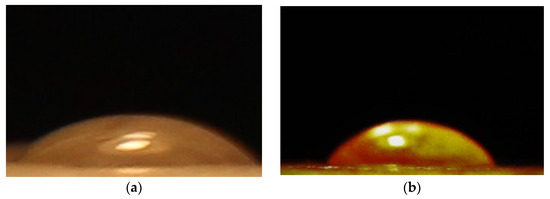 The contact angle images for fabricated biocomposites ((a) PLA and (b) PLA-WL-7).