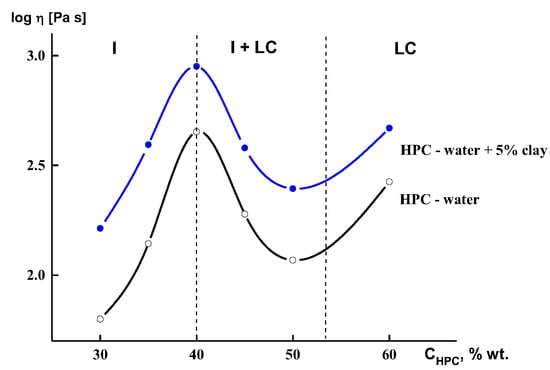 More expressive and representative are data obtained in measuring the viscosity evolution at different constant shear stresses (Figure 7).