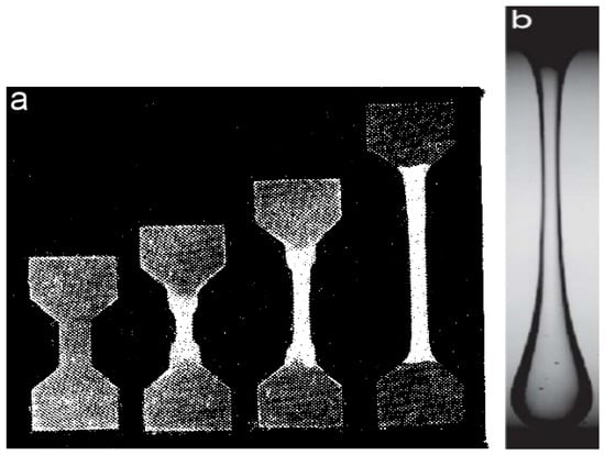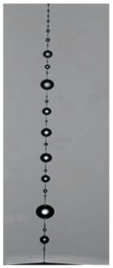 - Wagner, C.; Amarouchene, Y.; Bonn, D.; Eggers, J. Droplet Detachment and Satellite Bead Formation in Viscoelastic Fluids. Phys. Rev. Lett. 2005, 95, 164504. [Google Scholar] [CrossRef] [Green Version]