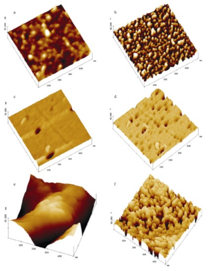 - Baalousha, M.; Lead, J.R. Characterization of natural and manufactured nanoparticles by atomic force microscopy: Effect of analysis mode, environment and sample preparation. Physicochem. Eng. Asp. 2013, 419, 238–247. [Google Scholar] [CrossRef]