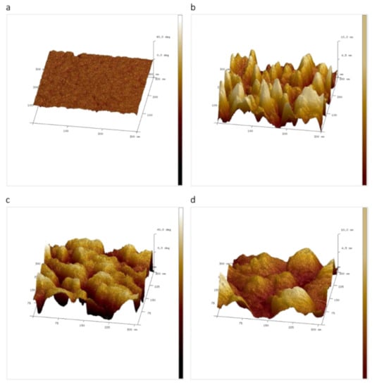 - Pelto, J.M.; Haimi, S.P.; Siljander, A.S.; Miettinen, S.S.; Tappura, K.M.; Higgins, M.J.; Wallace, G.G. Surface Properties and Interaction Forces of Biopolymer-Doped Conductive Polypyrrole Surfaces by Atomic Force Microscopy. Langmuir 2013, 29, 6099–6108. [Google Scholar] [CrossRef] [PubMed] [Green Version]