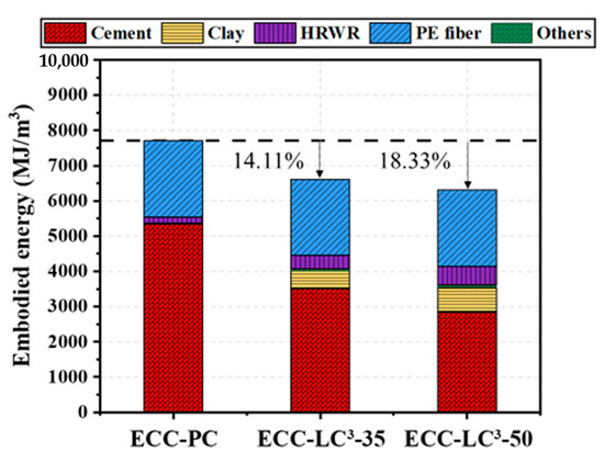 14]. Moreover, the embodied energy and carbon for producing calcined clay and limestone powder are much lower than those for cement production [