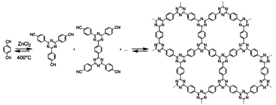 Polymerization of CTF-1 from the monomer 1,4-dicyanobenzene via ionothermal synthesis [17].