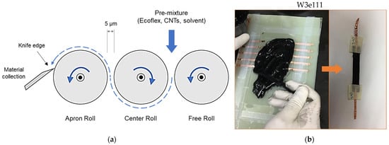 - Khalid, H.R.; Choudhry, I.; Jang, D.; Abbas, N.; Haider, M.S.; Lee, H.K. Facile Synthesis of Sprayed CNTs Layer-Embedded Stretchable Sensors with Controllable Sensitivity. Polymers 2021, 13, 311. [Google Scholar] [CrossRef] [PubMed]