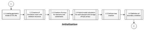 Figure 8 shows the flow diagram used to implement the EESM material model for getting real-time simulation of soft tissue behavior subjected to deformation fields using Python, Visualization Toolkit (VTK), NumPy, SciPy, Wx, Matlab, and tools such as collision detection, and main interaction cycle for the virtual environment discussed in previous works [49]. This computer algorithms were implemented using average hardware to avoid any bias. The simulations were run in an equipment with an Intel® Core™ i7-4510U @ 2.00 GHz with 8 GB RAM and an NVIDIA GeForce 710 M. All simulations used the same standard mesh, which is a liver geometry composed by 5322 elements.