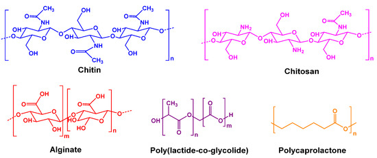 The chemical structures of these naturally degradable hydrogels are presented in Figure 1. All of these hydrogels exhibit common characteristics. They are natural polymers that can be dissolved in water to form hydrogels. Moreover, these hydrogels are typically biocompatible and can be used in the human body without leading to severe rejection reactions. Furthermore, their chemical and physical properties render them as good candidates for the immobilization and delivery of therapeutic enzymes [41].