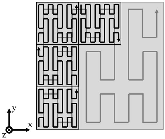 Quasi-simultaneous exposure of varying geometries is based on the repetitive, consecutive exposure of distinct fractal patterns. Each sub-segment constitutes a closed loop, allowing for an uninterrupted quasi-simultaneous exposure, schematically displayed in Figure 4.