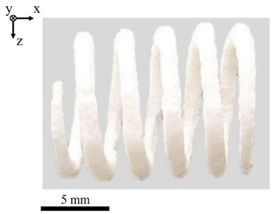 The applicability of low temperature PBF of complex geometries is correlated with varying layer times [3], implying varying cooling times. Manufactured compression springs, displayed in Figure 14, demonstrate the suitability of the proposed fractal, non-isothermal processing strategy for successfully manufacturing geometries with varying cross-sections at non-isothermal processing conditions. Consequently, the proposed approach allows for the manufacturing of thick-walled and thin-walled components based on the combination of locally quasi-simultaneous exposure and fractal scan path generation. With regard to the geometric accuracy, structural restrictions can be observed.