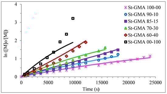 - Mayo, F.R.; Lewis, F.M. Copolymerization. I. A Basis for comparing the behavior of monomers in copolymerization; the copolymerization of styrene and methyl Methacrylate. J. Am. Chem. Soc. 1944, 66, 1594–1601. [Google Scholar] [CrossRef]