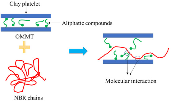Schematic illustration of the intercalation of NBR chains in OMMT galleries.