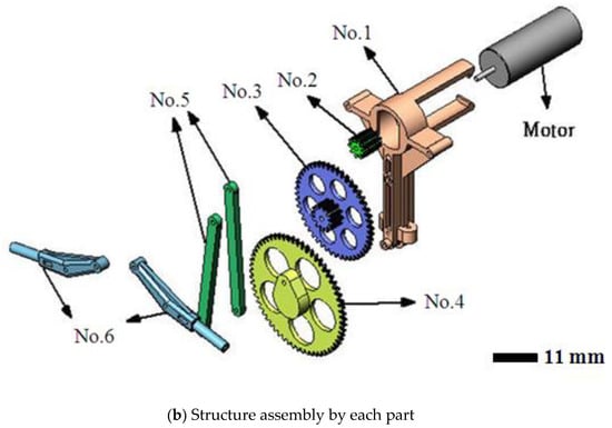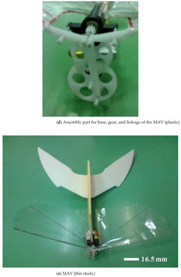 Figure 8 shows the various molded parts of the transmission structure by PIM; the authors assembled these components as transmission parts on the FW-MAV. This study was able to fabricate good parts and assemble a fabricated FW-MAV.