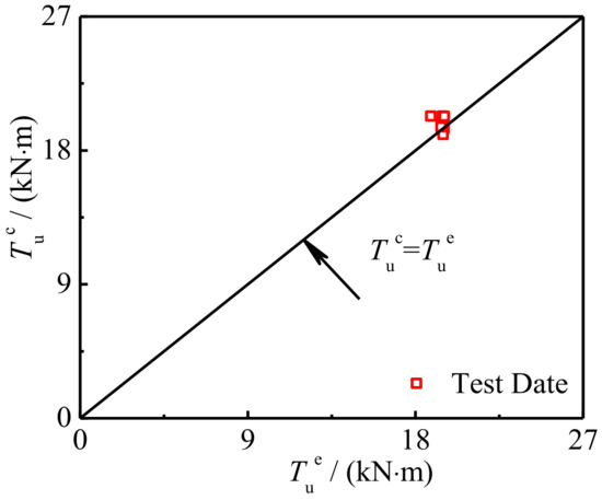 Figure 27 shows the comparison between the calculation results Tuc of torsional bearing capacity and the test and finite element results Tue. The average value of Tuc/Tue of components is 1.025 and the mean square deviation is 0.029. It can be seen that the calculated results are in good agreement with the experimental results.