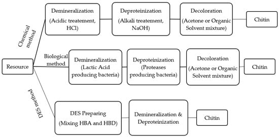 Extraction of chitin. DES: deep eutectic solvents; HBA: hydrogen bond acceptor; HBD: hydrogen bond donor.
