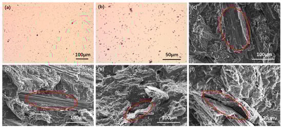 Scanning electron microscopy (SEM) was employed to investigate the interfacial bonding between the components in the composites. The micrographs of PBS composites with 40 wt% rice straw fiber (Figure 9c) showed that self-broken fibers can be observed in the fracture surface, which indicates that the bonding force between the two phases of the composite material was greater than the internal stress of the fiber itself.