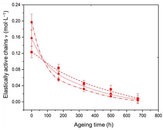 where and are the concentrations of the elastically active chains after and before radio-thermal ageing, respectively.