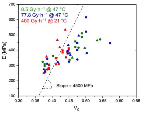 - Planes, E.; Chazeau, L.; Vigier, G.; Fournier, J.; Stevenson-Royaud, I. Influence of fillers on mechanical properties of ATH filled EPDM during ageing by gamma irradiation. Polym. Degrad. Stab. 2010, 95, 1029–1038. [Google Scholar] [CrossRef]
