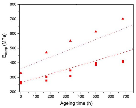 As shown in previous studies [45,46], can roughly be associated with the Young’s modulus of the composite material under consideration.