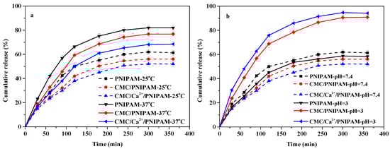 (a) Effect of temperature on drug release; (b) effect of pH on drug release.