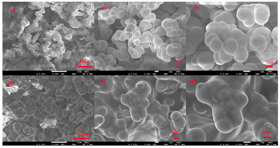 Scanning electron microscopy (SEM) images of PF (a–c) and ASO-PF (d–f) xerogels.