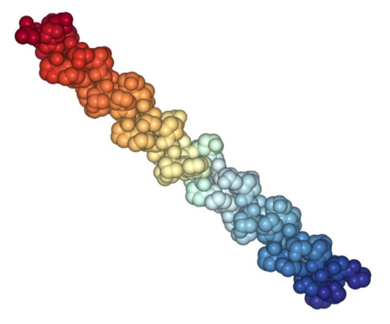 Crystal structure of tropocollagen from Protein Data Bank (PDB), 1cag [40].