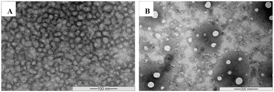 Representative TEM images obtained from unloaded Myrj S100-b-PCL88 (A) and CyA-loaded Myrj S100-b-PCL88 micelles (B) using JEOL JEM-1100 Transmission electron microscope (JAPAN) operating at an acceleration voltage of 80 kV.