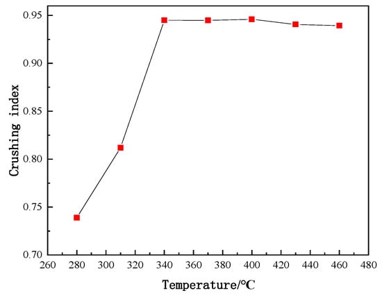 - The PVC film samples slowly shrank in volume with increasing temperature from 280 °C to 460 °C. The de-chlorination ratio increased significantly with increasing temperature before 370 °C. The de-chlorination rate was up to 84% at 370 °C, and the chlorine content in the product was 9%. The de-chlorination ratio decreased slightly as the temperature continued to rise, then showed no change. The pulverization performance increased with the temperature. Overall, the optimum heat treatment temperature of the PVC film was 370 °C.