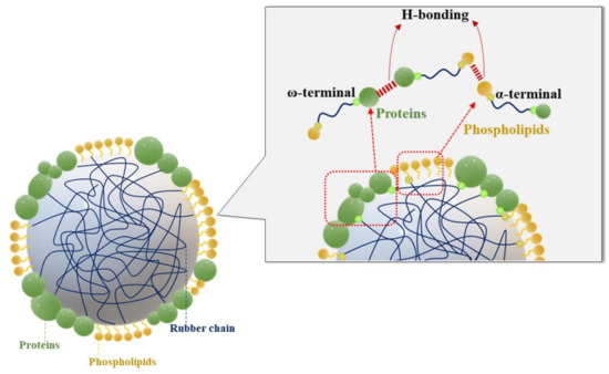- Sansatsadeekul, J.; Sakdapipanich, J.; Rojruthai, P. Characterization of associated proteins and phospholipids in natural rubber latex. J. Biosci. Bioeng. 2011, 111, 628–634. [Google Scholar] [CrossRef]