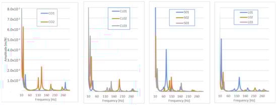FRF measurement of composite samples: CO—Carbon, CL—hybrid carbon–flax, S—glass, L—Flax.