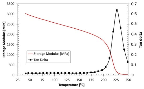 DMA results, that is, tan delta and storage modulus, of the RTM6 epoxy resin.