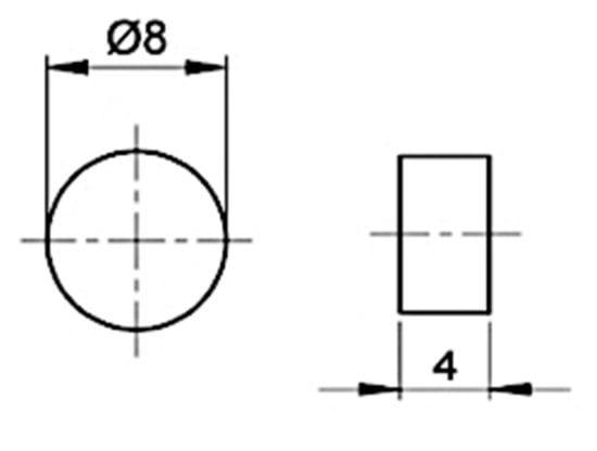 The cured cylindrical rods of the resin were cut into disk-shaped samples, with 8 mm diameter and 4 mm height (i.e., height to diameter ratio is 0.5), as shown in Figure 2. Identical samples and loading conditions were used for both reference quasi-static and high strain rate tests, in order to eliminate any discrepancies related to sample geometry or size or testing boundary conditions.