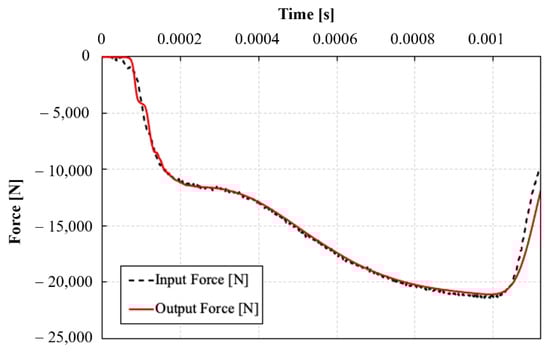 Figure 7 represents a comparison between the time histories of the forces at the input and output bar/specimen interfaces during one of the dynamic compression experiments. It can be seen that the input bar force signal showed an excellent agreement with the output bar force signal starting from approximately 100 µs. This indicates the achievement of a quasi-static force, and hence stress, equilibrium in the sample from the early stages of deformation. An early quasi-static equilibrium was achieved for all dynamically tested specimens. It should be noted that the oscillations resulting from the self-alignment attachment on the output bar were small in magnitude and occurred at stress levels in the sample below 100 MPa, which is well into the elastic stage [10].