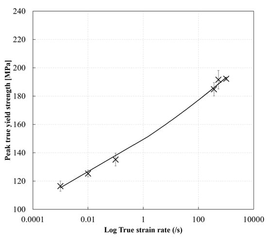 where is the true peak yield strength in compression, A is the compressive strength coefficient with a value of 149.19 MPa, and b is the strain rate sensitivity exponent 0.0374.