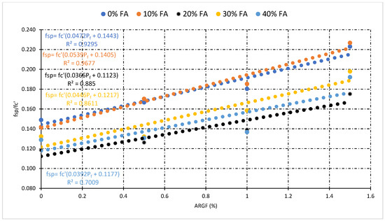 Mutual effect of FA and ARGF on the split tensile properties of concrete.