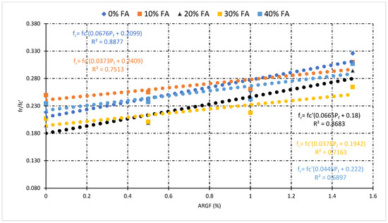 Mutual effect of FA and ARGF on the compressive properties of concrete.