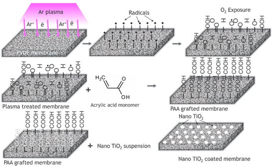 - Chen, X.; Huang, G.; An, C.; Feng, R.; Yao, Y.; Zhao, S.; Huang, C.; Wu, Y. Plasma-induced poly(acrylic acid)-TiO2 coated polyvinylidene fluoride membrane for produced water treatment: Synchrotron X-ray, optimization, and insight studies. J. Clean. Prod. 2019, 227, 772–783. [Google Scholar] [CrossRef]