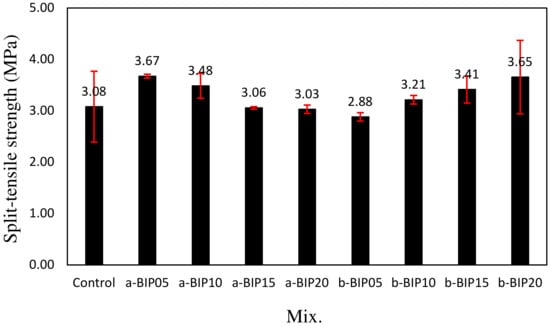 - The tensile strengths of the samples containing the BIPs were relatively higher than that of the control sample, similar to the trend observed for the compressive strength. In general, appropriate use of BIP was shown to be effective in improving the mechanical properties. In this study, the best results were obtained when 5% a-BIP was used.