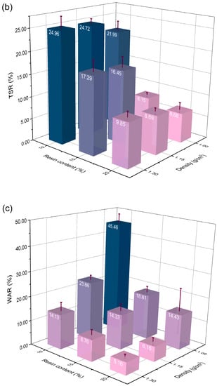 Figure 2. Water resistance of BSC samples including (a) WSR, (b) TSR, and (c) WAR.