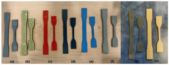 Coupon samples of Polyurea materials (a) S1, (b) S2, (c) S3, (d) S4, (e) S5, (f) S6, (g) S7, and (h) S8.