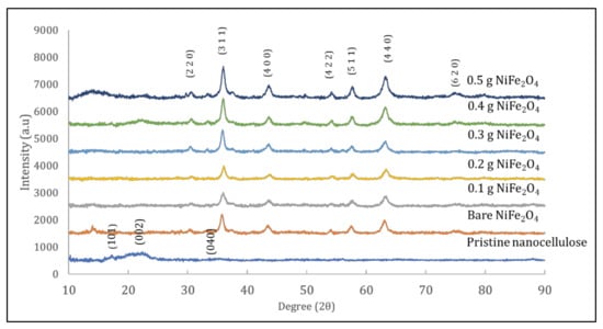 3.2.1. Pristine Nanocellulose and Nickel Ferrite